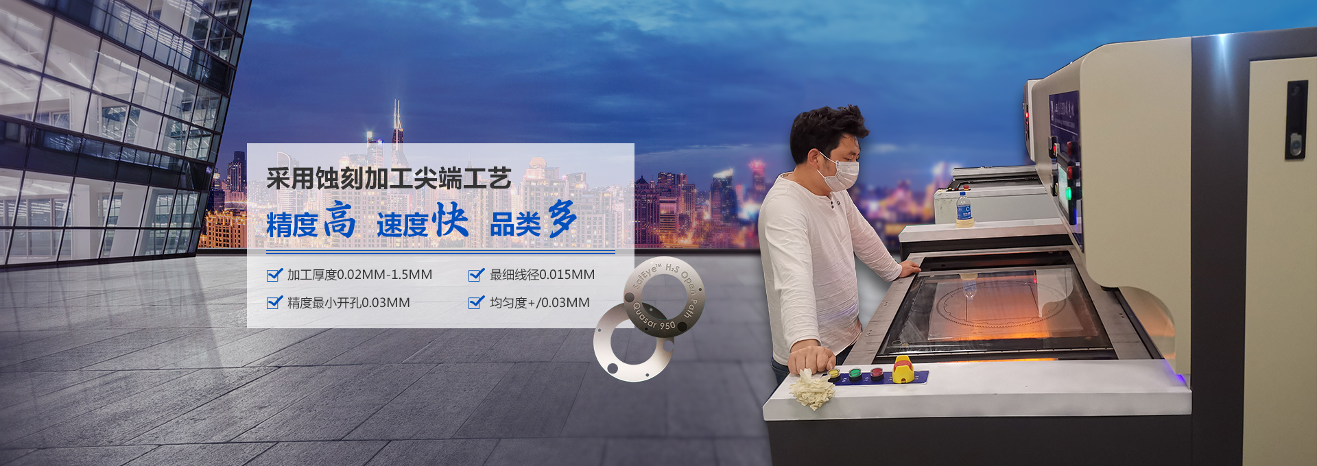 公司所使用的材料以進口為主,能夠對各種不同的金屬材質進行蝕刻加工,主要有SUS304、SUS301奧氏體鋼不銹鋼系列、鐵素體鋼材、馬氏體鋼、非鐵金屬、合金材料、復合材料等各種特殊材料。厚度從